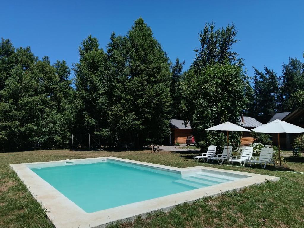 Los huéspedes pueden usar la piscina al aire libre en Cabañas Nattiva Lacustre Villarrica durante la temporada de piscina.